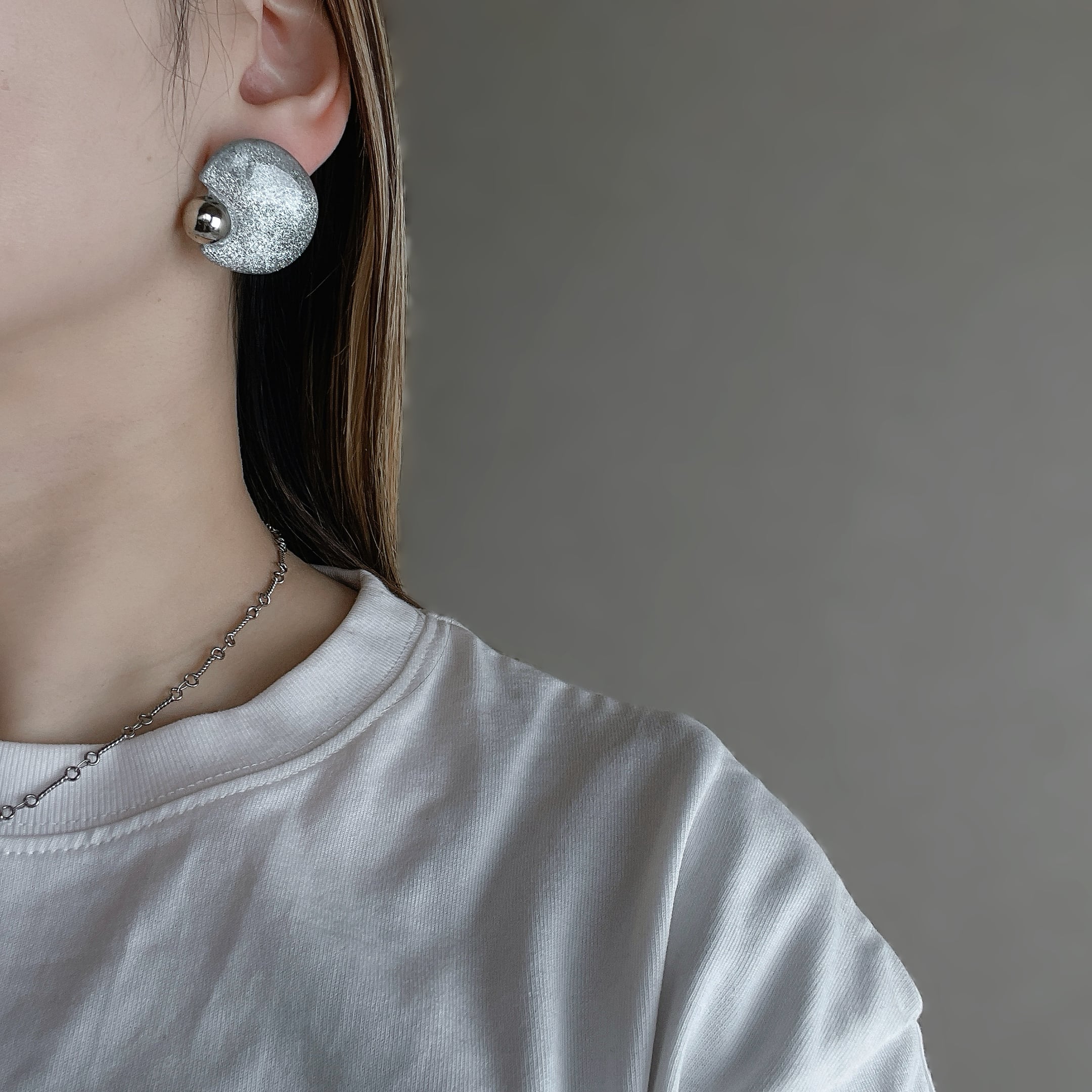無機質な輝きを耳元に集めた、Nebula Metal pierce/earring。